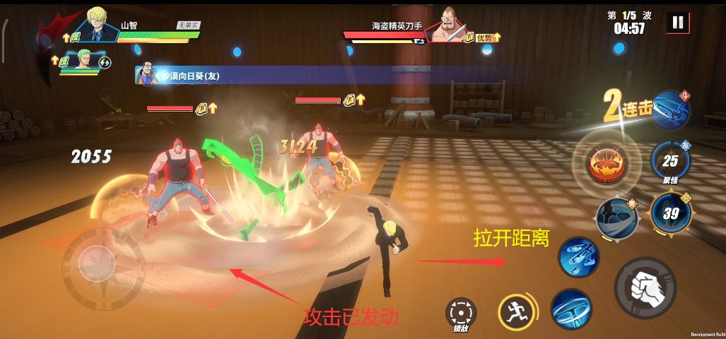 如果大家使用的是山智,则可以利用【宴会桌旋转踢】的外圈攻击敌人,再利用【一级绞肉】打一波。