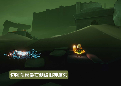 季节蜡烛在墓土最右边的破庙后面,边上还一朵黑暗植物。