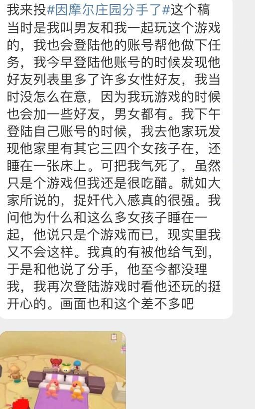 这个稿当时是我叫男友和我一起玩这个游戏的,我也会登陆他的账号帮他做下任务,我今早登陆他账号的时候发现他好友列表里多了许多女性好友,我当时没怎么在意,因为我玩游戏的时候也会加一些好友,男女都有。我下午登陆自己账号的时候,我去他家玩发现他家里有其它三四个女孩子在,还睡在一张床上。可把我气死了,虽然只是个游戏但我还是很吃醋。就如大家所说的,捉奸代入感真的很强。我问他为什么和这么多女孩子睡在一起,他说只是个游戏而已,现实里我又不会这样。我真的有被他给气到,于是和他说了分手,他至今都没理我,我再次登陆游戏时看他还玩的挺开心的。画面也和这个差不多吧,不过更离谱,睡了三四个。