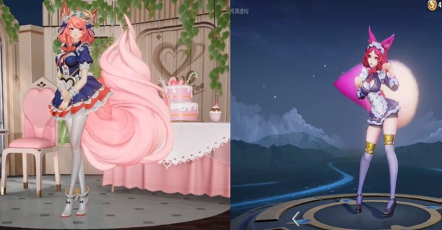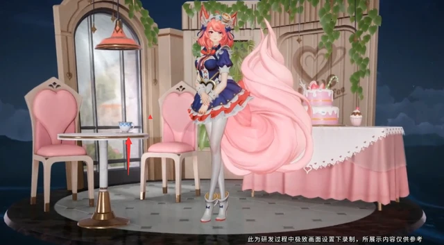 出场动画是妲己用一串爱心注入到咖啡里面,然后做了一个优美的动作,等待客人光临他的咖啡屋。造型也变得更加卡通了,尾巴看起来就像一卷雪糕的样子,不过小腿的地方是不是太细了呢。