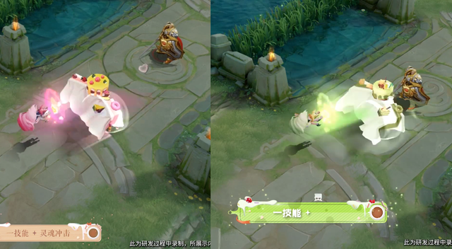 1技能的特效在细节上稍微有些不一样,主要是桌子上的点心不太一样。