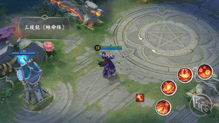 阿织朝指定方向瞬移,并在终点前方生成一个[蜘命阵],对范围内的敌人造成法术伤害和减速效果。