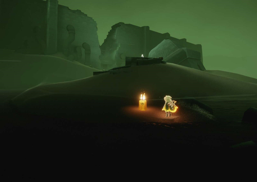 季节蜡烛在墓土最右边的破庙后面,边上还一朵黑暗植物。