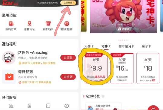 2,不要在首页点宅神卡,去到“我的”并点击“会员”