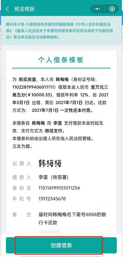 4、填写好二人的信息后即可完成创建,在临近还款日期时,也会发出短信提醒借款人还款。