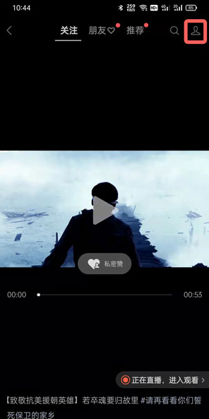 1、在微信打开视频号后,点击右上角的【人头】图标进入;