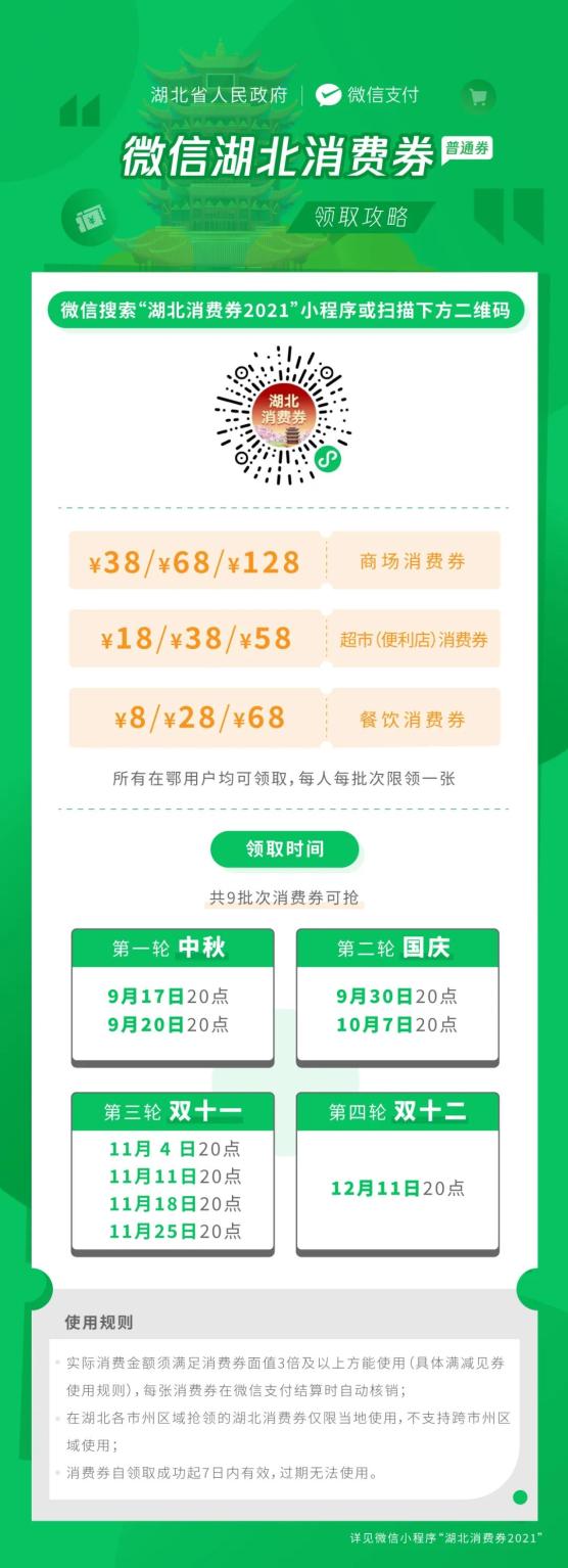 普通券:理论上,每人每批最多可在每个平台各抢领三类消费券任意一类1张,即4家平台每家1张共计4张。省内消费者可按照所在市州区域(含所辖县、市、区)在入选指定4家互联网平台APP上抢领普通券。每轮每批次普通券发放,每位消费者可在1个平台上任选三类消费券中任意一类、任意一种面额抢领,不同平台可重复抢领,每个平台帐号每轮每批次三类消费券限抢领1张。