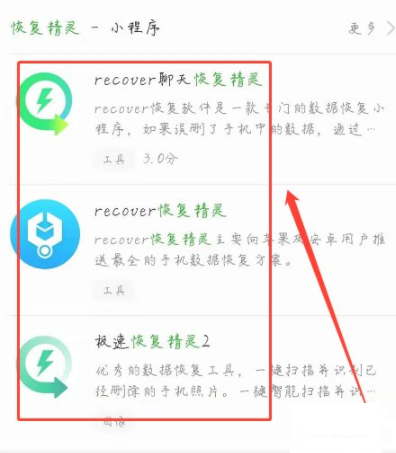 如果在这里面还是找不到我们想要找的视频的话,我们也可以在微信里面找一些小程序来进行恢复。