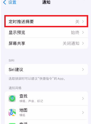 2、然后在通知功能界面中,点击最上方的【定时推送摘要】进入到界面中;