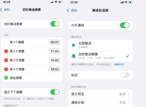 最近在用的“通知摘要”,可以自选应用在设置的时间点集中推送通知,免去日常的打扰,让手机变得更安静,减少垃圾短信的干扰。