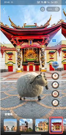 3、等待彩蛋动画结束,我们往阿宝消失的方向旋转视角,找到阿宝(注意地面上的十二生肖,在猴、羊、马的方向就可以找到);