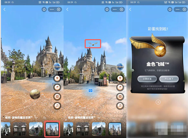 1、进入哈利波特的魔法世界景区,在最下方滑动场景来到最后一个场景;