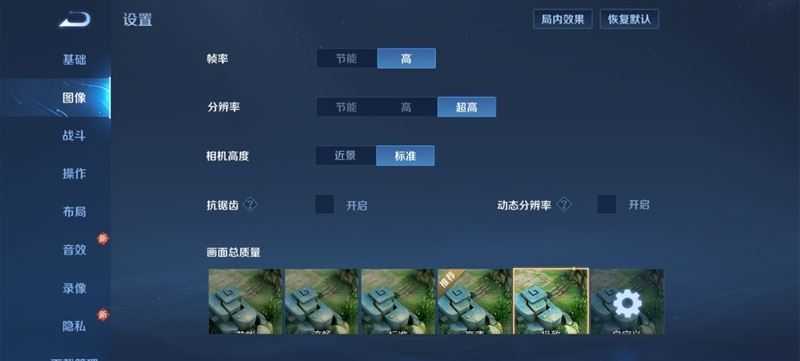 在游戏《王者荣耀》中,我们在游戏内开启高帧率、超高分辨率、极致画质。
