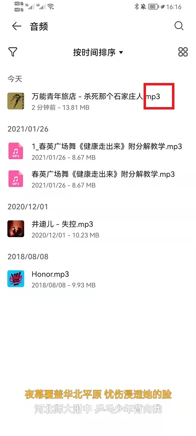 4、然后在此界面中,就可以看到我们下载的音频就是mp3格式。