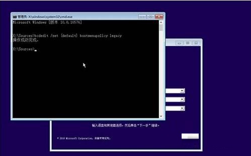 4、执行如下命令(注意留空格):bcdedit /set {default} bootmenupolicy legacy