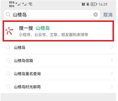 1、首先打开微信,然后在搜索界面输入【山楂岛】然后点击搜索;