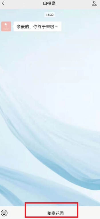 4、然后在公众号聊天界面中,点击下方的【秘密花园】即可进入到网页链接界面中。