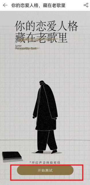 2、点击进入之后,我们点击界面下方的【开始测试】就可以开始测试我们的人格,当然需要经过几道选择题目,选择不同的音乐,来测试最后的结果;