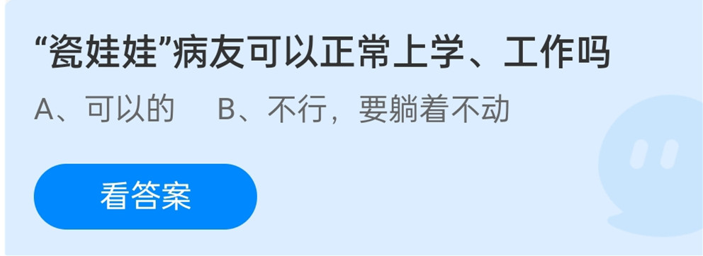 蚂蚁庄园12月7日的问题分别是:白化病是一种什么病?“瓷娃娃”病友可以正常上学、工作吗?很多的小伙伴还不知道正确的答案,今天去秀的小编就给大家带来了详细的介绍,有需要的小伙伴就一起来看看吧!