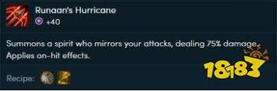 卢安娜的飓风由负极斗篷和反曲之弓合成,装备后携带者的普通攻击会对附近的另一名敌人发射一个弹体,造成携带者75%攻击力的物理伤害,并附带普攻特效。这一特性使得飓风成为了游侠、枪手、剑士等高攻速英雄的理想选择。