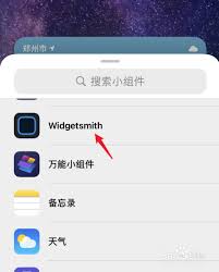 在屏幕上方的搜索框中输入“widgetsmith”,或者在小组件列表中找到widgetsmith应用图标。