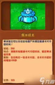 总之,植物大战僵尸嫁接版中的冰菇王凭借其强大的冰冻攻击、群体减速、持续时间长、冷却时间短以及出色的防御和配合能力,成为了玩家在游戏中不可或缺的得力助手。无论是新手玩家还是资深玩家,合理运用冰菇王的技能,都能在与僵尸的战斗中取得更好的成绩,享受游戏带来的乐趣。