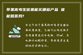 总之,苹果高考生优惠政策犹如一座桥梁,连接起了高考生与前沿科技。它为学子们开启了一扇通往精彩大学生活的大门,助力他们在科技的陪伴下,书写属于自己的辉煌篇章,在知识的天空中自由翱翔,迎接更加美好的未来。