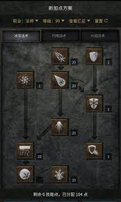 - 冰系技能:将冰弹、冰尖柱等前置技能点满,确保冰环等级足够高,以获得强大的控制效果。冰风暴可适当投入一些点数,增加范围伤害。
