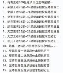 至尊星耀段位,星耀Ⅴ继承到永恒钻石Ⅰ;星耀Ⅳ继承到至尊星耀Ⅳ;星耀Ⅲ继承到至尊星耀Ⅲ;星耀Ⅱ继承到至尊星耀Ⅱ;星耀Ⅰ继承到至尊星耀Ⅰ。