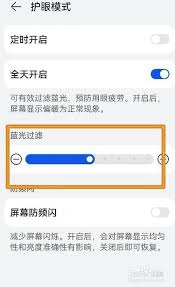 点击进入“护眼模式”选项页面后,就能看到过滤蓝光的相关设置。这里可以对蓝光过滤的强度进行调整。一般来说,初始可能会有一个默认的强度设置,你可以根据自己的需求和实际感受来增加或降低强度。比如,如果你觉得默认强度下屏幕的色彩有些失真,就可以适当降低强度;而如果感觉眼睛还是有些不适,就可以提高强度。